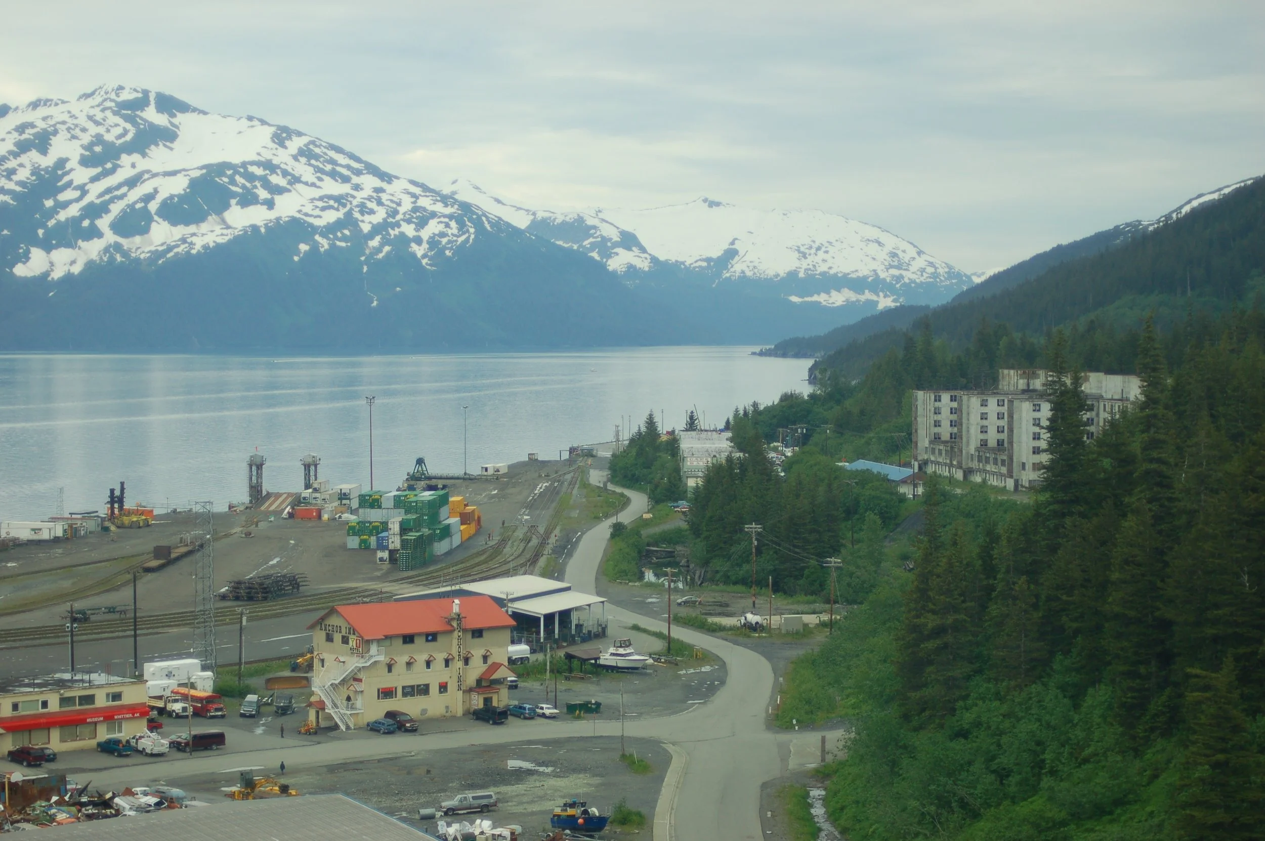 Whittier sits between mountains and sea, accessible mainly by a single tunnel that closes each night. Nearly all 200 residents live in Begich Towers, a 14-story structure built for military use in the 1950s.